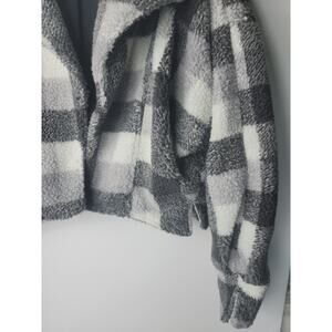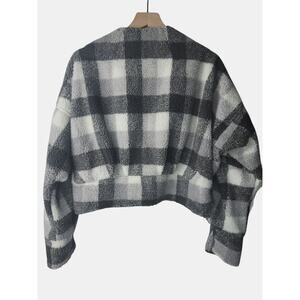Cropped flyway-lined jacket. Oversized. Gray/White plaid. Awesome layering piece.