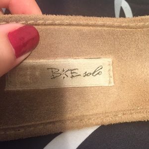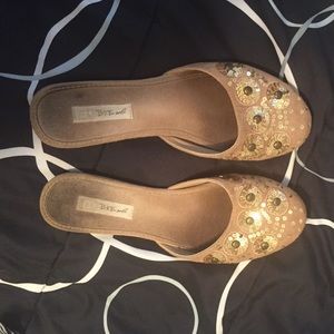 BKE Tan suede slip-on flats with gold sparkle to pizzaz it up :) They are worn and you can see it on the foot part.