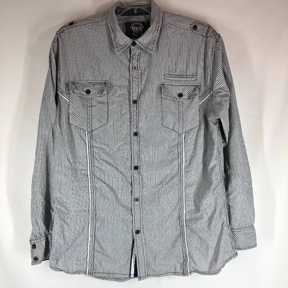 BKE Gray And White Striped Button Up Shirt Size 2XL