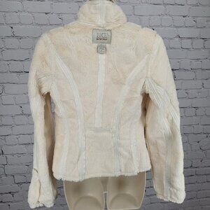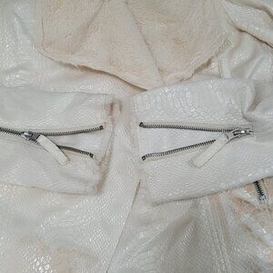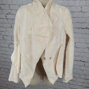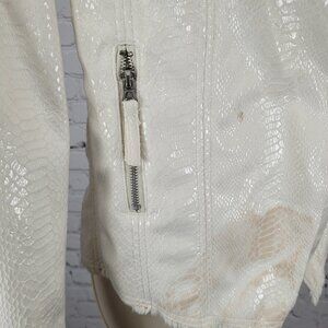 BKE Ivory Animal Print Soft Faux Fur Lined Snap Front Moto Jacket Size Small S