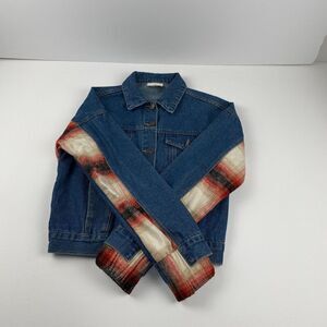 BKE Jacket Women Sz XS Relaxed Jean and plaid flannel Boho Trucker outdoor Blue