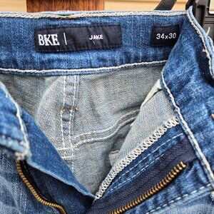 BKE Jake Buckle Blue Jeans Boot Cut Size 34 x 30 Hemmed to 26" worn a few times