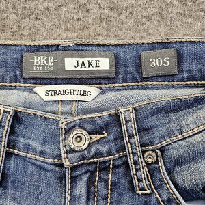 BKE Jake Straight Leg Jeans Mens Size 30S (30x29) Blue Faded Distress Stretch