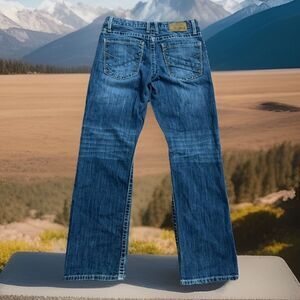 The BKE Jeans Jake Mens 32x31 Blue Denim Bootcut is a stylish and versatile pair of jeans for men. Made from a durable denim fabric with a mid-rise, these jeans feature a zip closure, 5-pocket design, and distressed detailing for a trendy look. The bootcut style and thick stitching add a modern touch, while the classic blue color makes them easy to pair with any season's wardrobe. Perfect for everyday wear or casual outings, these BKE jeans offer comfort and style in one convenient package.