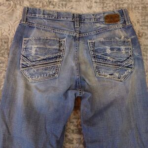 BKE Jeans Mens 33L 33x31 Blue Tyler Straight Leg Denim Distressed Casual Preppy