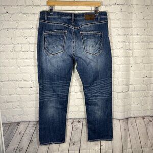 BKE Jeans Mens 36S Nolan Straight Leg Whiskered Stretch Buckle Thick Stitching