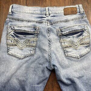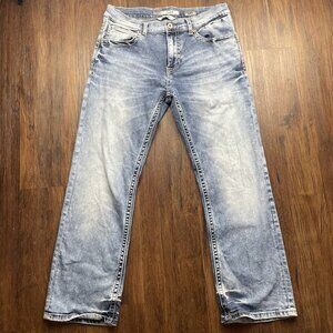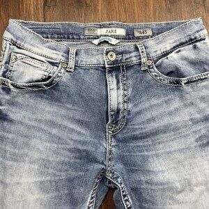 BKE Jeans Men’s Size 34x28 Jake Bootleg Medium Wash Whiskered Distressed Stretch