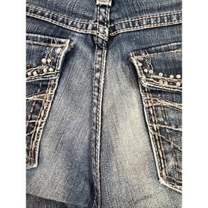 BKE Jeans Womens 31 Blue Sabrina Bootcut Denim Flap Pockets Thick Stitch Bling
