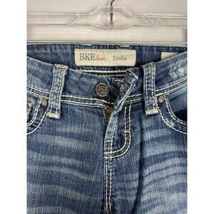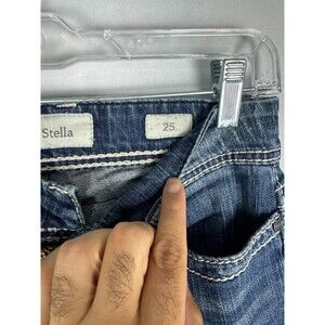 Step into effortless style with the BKE Jeans Women's Stella, size 25, in a classic blue hue that promises versatility and comfort. These tapered jeans showcase a stylish embroidered design, adding a touch of flair to your casual wardrobe. Ideal for those who appreciate a blend of modern sophistication and western cowgirl charm. Crafted for the fashion-forward woman, these jeans from the renowned brand Buckle are designed to fit beautifully into any regular size wardrobe. The medium fabric wash ensures a flattering look that pairs easily with your favorite tops and shoes, making it a staple for both daytime outings and evening ventures.