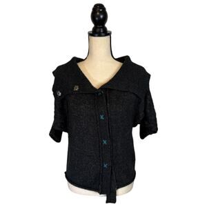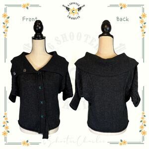 BKE Knit Batwing Short Sleeve Full Snap Sweater Charcoal Womens Size Medium Soft