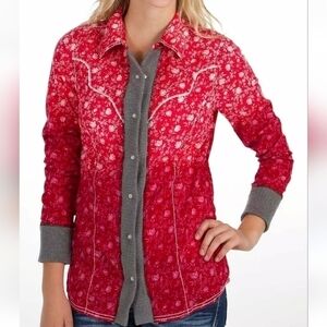 BKE LADIES LONG SLEEVE FITTED BUTTON UP FLORAL PRINT TOP- S