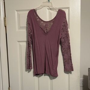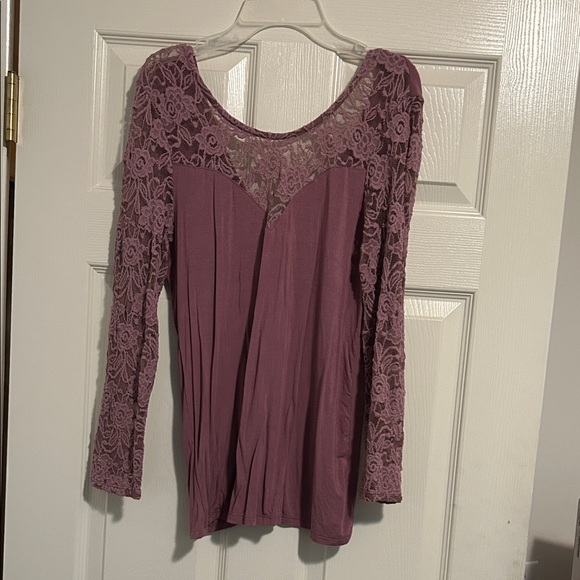 BKE Lace Detail Long Sleeve Blouse - Mauve
