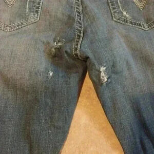 BKE Mens 40 x 34 Blue Derek Straight Preppy Ripped Medium Wash Denim Jeans