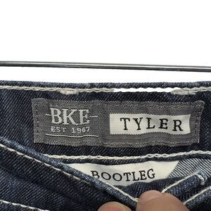 Stylish bootcut jeans. Dark blue wash. Classic five-pocket design. Comfortable fit.