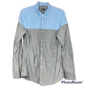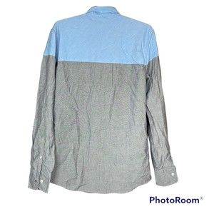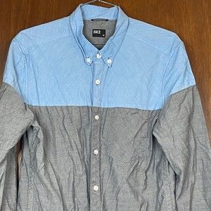 BKE Men’s Casual Grey and Blue Button Down Casual Shirt Size Medium