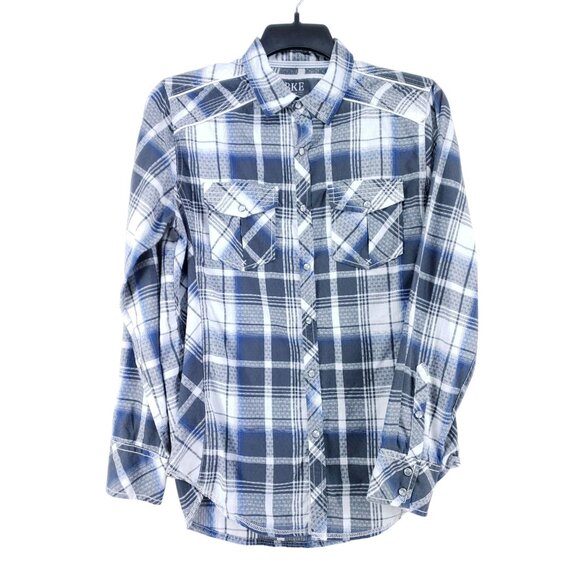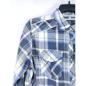 BKE Mens Medium Standard Fit Pearl Snap Western Shirt Blue Plaid Long Sleeve