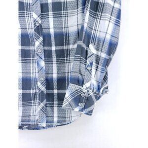 This BKE Western shirt features a versatile plaid design in blue tones, suitable for casual settings. Designed with a pearl snap closure and a standard fit, it ensures both comfort and style for everyday wear. The long sleeves and cotton fabric provide a breathable yet durable addition to your wardrobe. (F)