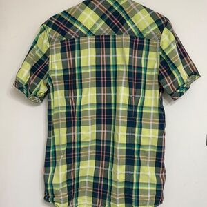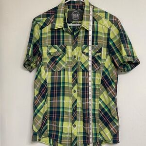 BKE Men's Short Sleeve Green/Orange/White Plaid Shirt Standard Fit Size M