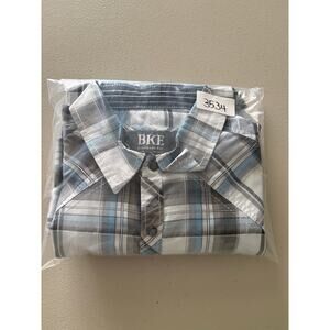 BKE Men's Size Large Western Plaid Pearl Snap Button Up Rodeo Rancher Shirt