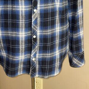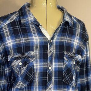 BKE Men's Tailored Fit Flannel Blue/White Pearl Snap Front Snap Pockets Sz XL