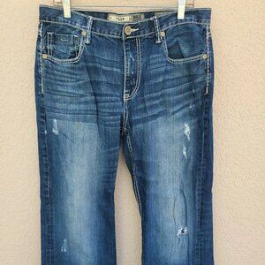 BKE Men's Tyler Dark Wash White Stitch Distressed Blue Jeans Size 34R