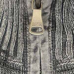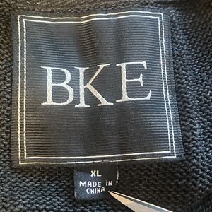 Men’s BKE quarter-zip knit sweater in a versatile charcoal gray tone.Made from a comfortable ramie-cotton blend, featuring ribbed trim, contrast shoulder stitching, and tonal stripe detail along both sleeves. Great for layering or casual wear.Details:Brand: BKEStyle: Quarter-Zip SweaterStyle No: SYP9-222TBKSize: XLColor: Charcoal GrayMaterial: 55% Ramie / 45% CottonMade in ChinaDate of Manufacture: 06/2009Closure: Quarter ZipCollar: Ribbed Mock NeckKnit Type: Medium weight textured knitTrim: Tonal stripe detail along sleevesMeasurements (approx, flat):Chest: 18" (36" total)Length: 27"Sleeve: 26.5"Condition:Very good pre-owned condition. Light general wear, no major flaws, clean and ready to wear.