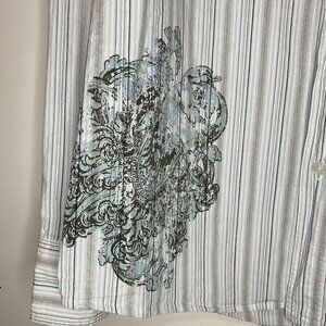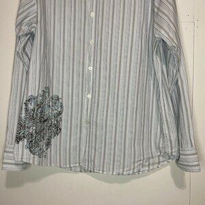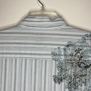 BKE Mens XL Contour Fit Striped Front/Back Design Button Down Blue Gray EUC.