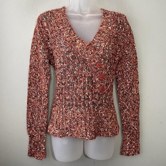 BKE Mohair Alpaca Sweater Size Medium Open Knit Marled Orange V-neck Y2K Boho