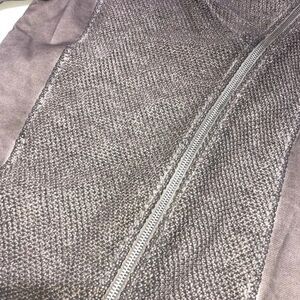 BKE Outerwear Taupe Asymmetrical Moto Zip Up Knitted Front Collared Jacket Small