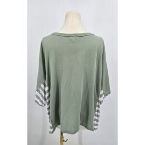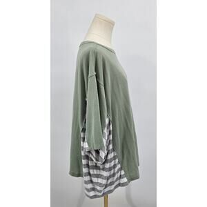 Relaxed and casual, this BKE oversized waffle knit top features a sage green body with contrasting gray and white striped side panels. Designed with dropped shoulders and a loose, flowy fit, it’s perfect for layering or wearing on its own.