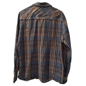 BKE Plaid Button Up Shirt Men's Size Large Slim Fit Blue/Brown Hiking Cabincore