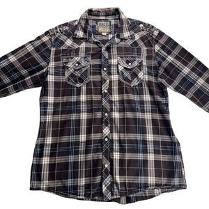 BKE Plaid Pearl Snap Western Shirt XL Roll Tab Sleeves Brown Cotton