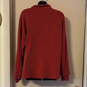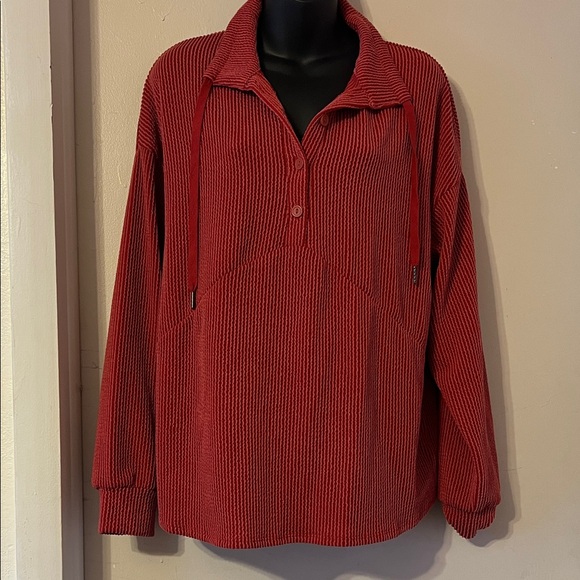 Chic red ribbed knit top. Comfortable and stylish.