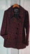 Stylish BKE pea coat. Features a red and black pattern. Double-breasted with button details.