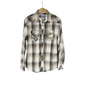 BKE Relaxed Fit Brown Tan Plaid Button Up Shirt Relaxed Fit Men’s Medium
