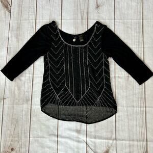 BKE Sheer beaded top art deco fairy Whimsigoth gothic 3/4 sleeve sparkle black S