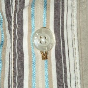 BKE shirt in perfect condition except for mark on inside tag. The shirt features a striking striped pattern that is sure to turn heads. It has long sleeves with buttoned cuffs, a collared neckline, and a button-down closure, making it an excellent choice for any casual occasion.
