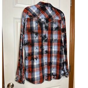 BKE Size XL Mens Vintage Timberjack Shirt Pearl Snap Blue Orange Plaid Shirt