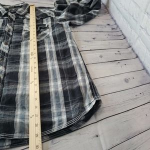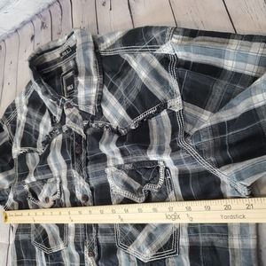 BKE Slim Fit Large Snap Button Gray Plaid Long Sleeve Shirt Double Pockets