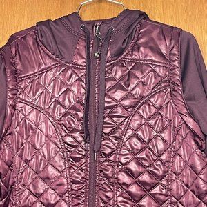 BKE Sport Woman's Shiny Metallic Plum Zip Up Hooded Jacket Size XL