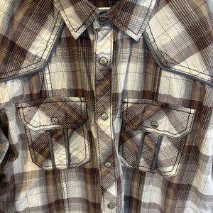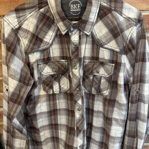 BKE Standard Fit Men's Plaid Western Snap Button Shirt Long Sleeve Sz L