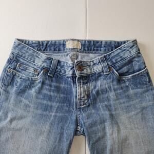 BKE Stella Jeans Womens 29 Blue Bootcut Denim Frayed Hem Embroidered Pockets