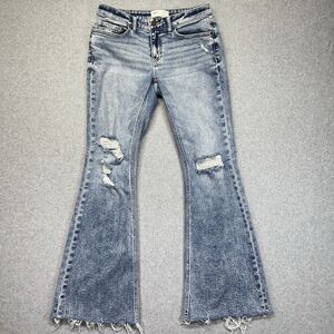 BKE Stella Slim Fit Low Rise Flare Jeans Womens 28x32 Stone Wash Open Hem