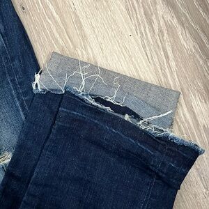 Raw hem- size 28 waist 24”L if unrolled all the way