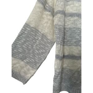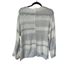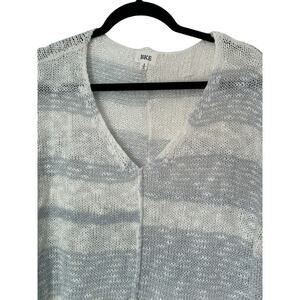 BKE Sweater Size S Blue Cream Striped Open Weave Lightweight Long Sleeve V-Neck