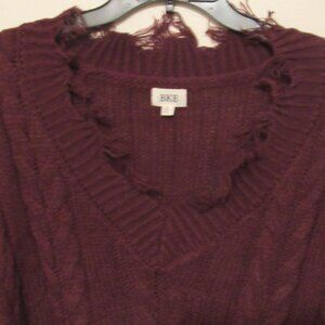 BKE Destructed Cable Knit Frayed Pullover Oversize Sweater V-Neck Small Brown. : Material 100% Acrylic