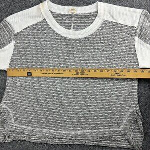 BKE Sweater Women's Large Gray White Stripe Colorblock 3/4 Sleeve Knit Pullover