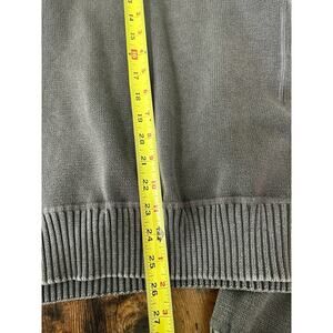 The product is a men's size large army green pullover sweater with a quarter zip and mock turtleneck design. It is a stylish and comfortable option for men looking for a versatile piece to add to their wardrobe. The army green color adds a rugged and military-inspired touch to the classic sweater style, making it a unique and practical choice for everyday wear.