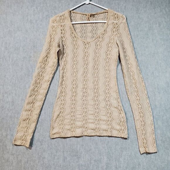 BKE Tops Womens Small Beige Blouse Nylon Blend Textured Lace Layering Scoop Neck