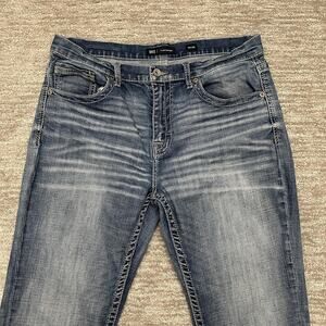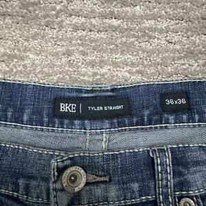 BKE Tyler Straight Jeans Mens 36x36 Blue Denim Straight Leg Whiskered Faded
